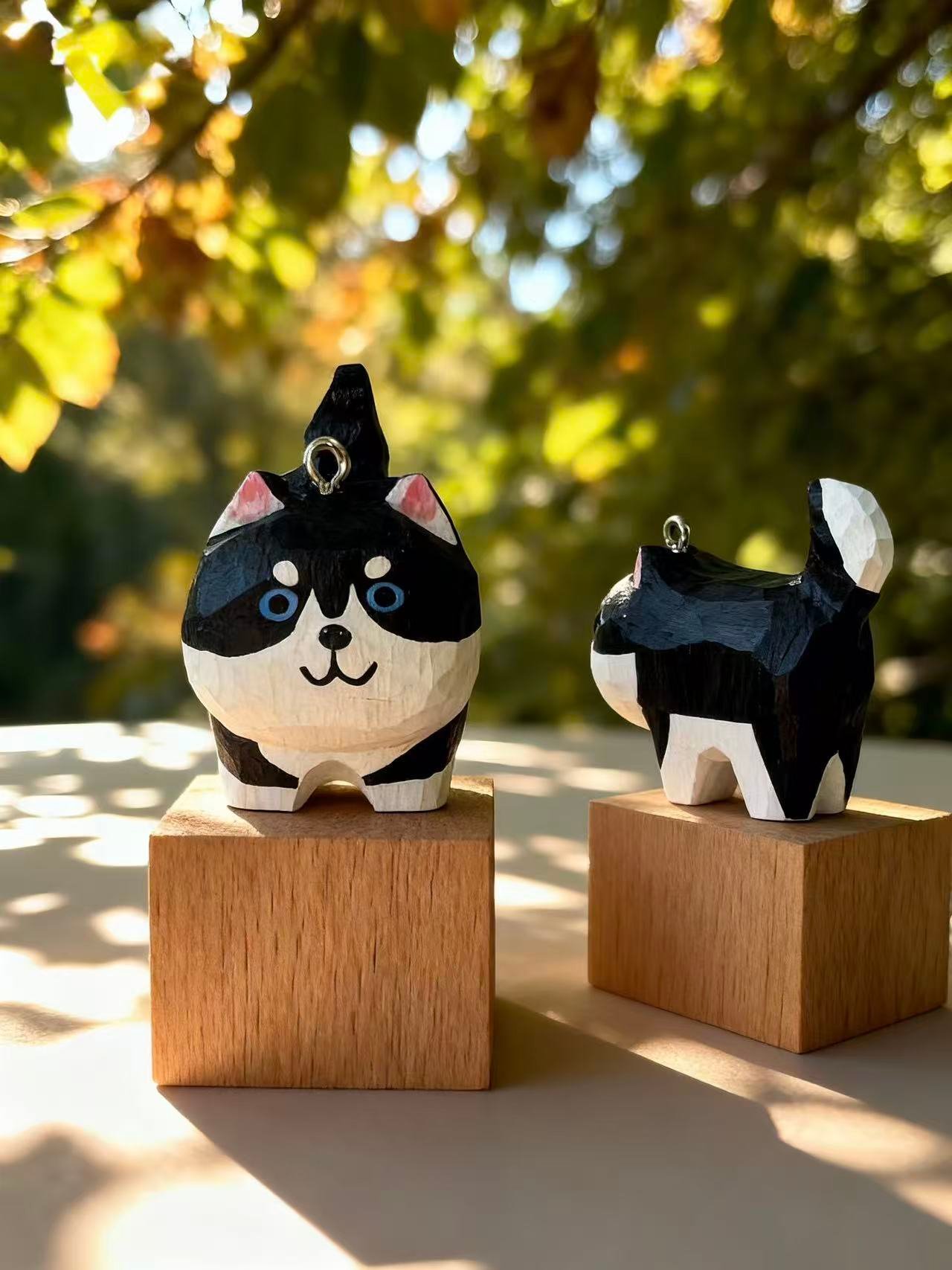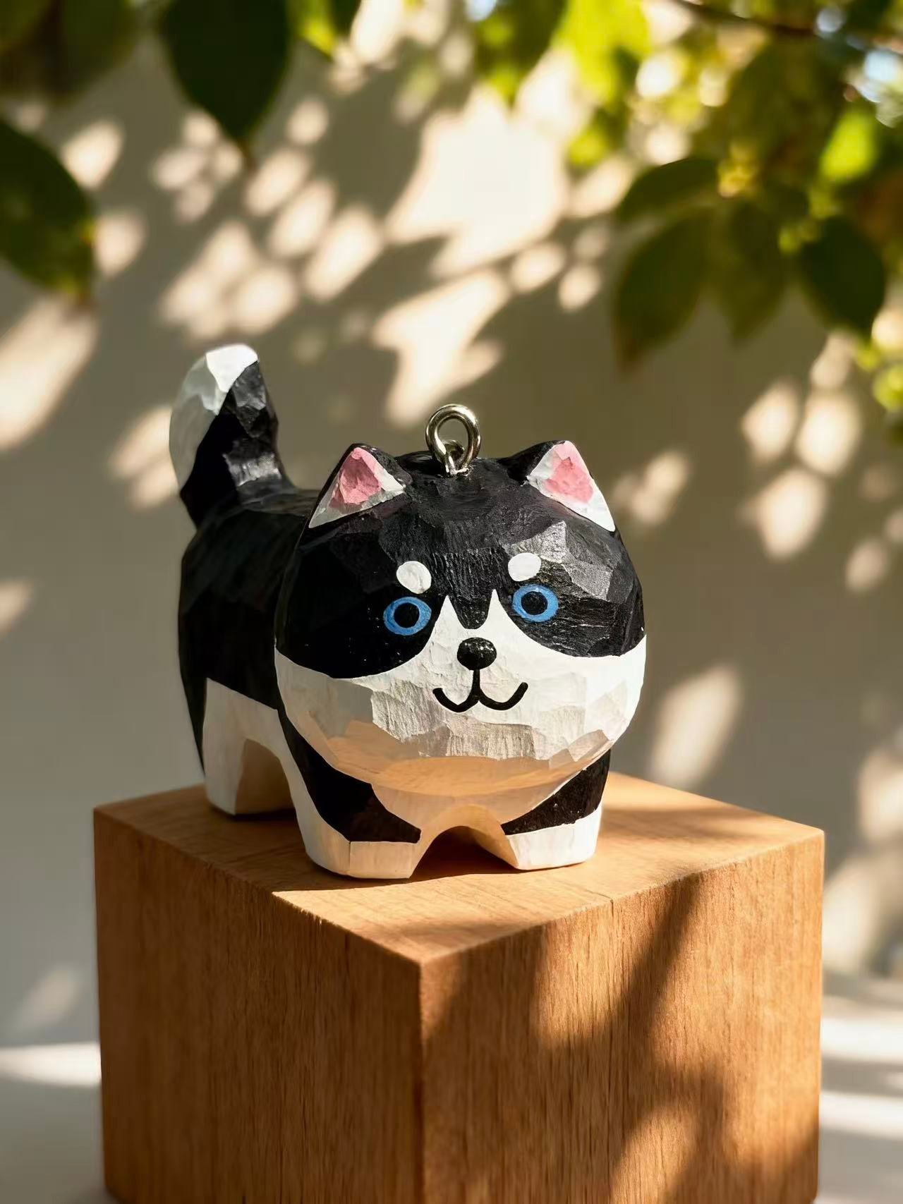 This hand‑carved Blue‑Eyed Husky from Carved Tales features striking black and white tones, bright blue eyes, and a cheeky grin. Its faceted texture and cartoon‑like proportions add a whimsical twist to this iconic breed. With a tiny loop for hanging or display, it’s perfect for shelves, gift wraps, or winter‑themed décor. Whether gifted to a husky fan or kept as a fun companion, it brings energy and charm to any space.