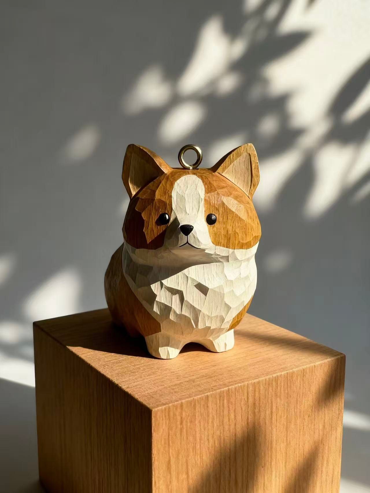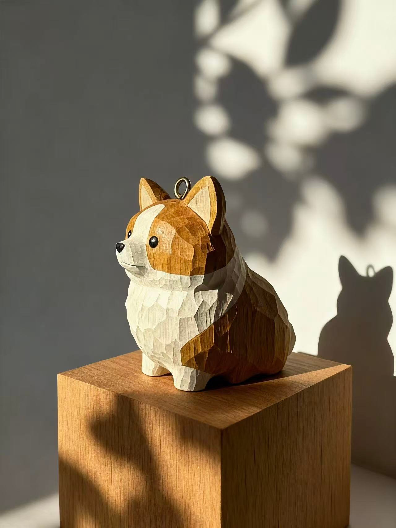 This hand‑carved Corgi from Carved Tales captures the playful spirit of everyone’s favorite short‑legged companion. With its faceted texture, warm brown and white tones, and signature upright ears, it’s a tribute to joy and friendship. The tiny loop makes it easy to hang or display—perfect for shelves, gift wraps, or dog‑themed décor. Whether gifted to a corgi lover or kept as a cheerful keepsake, it brings a smile wherever it goes.