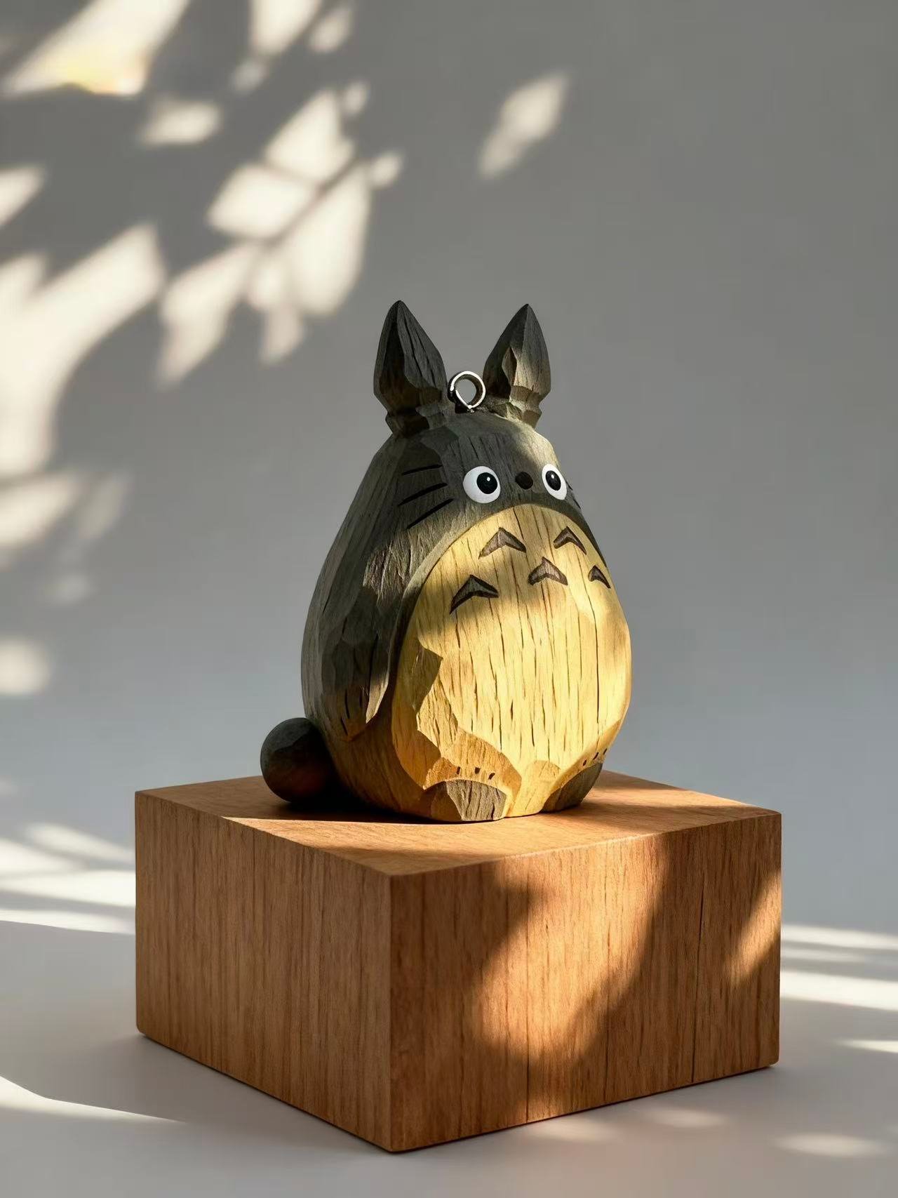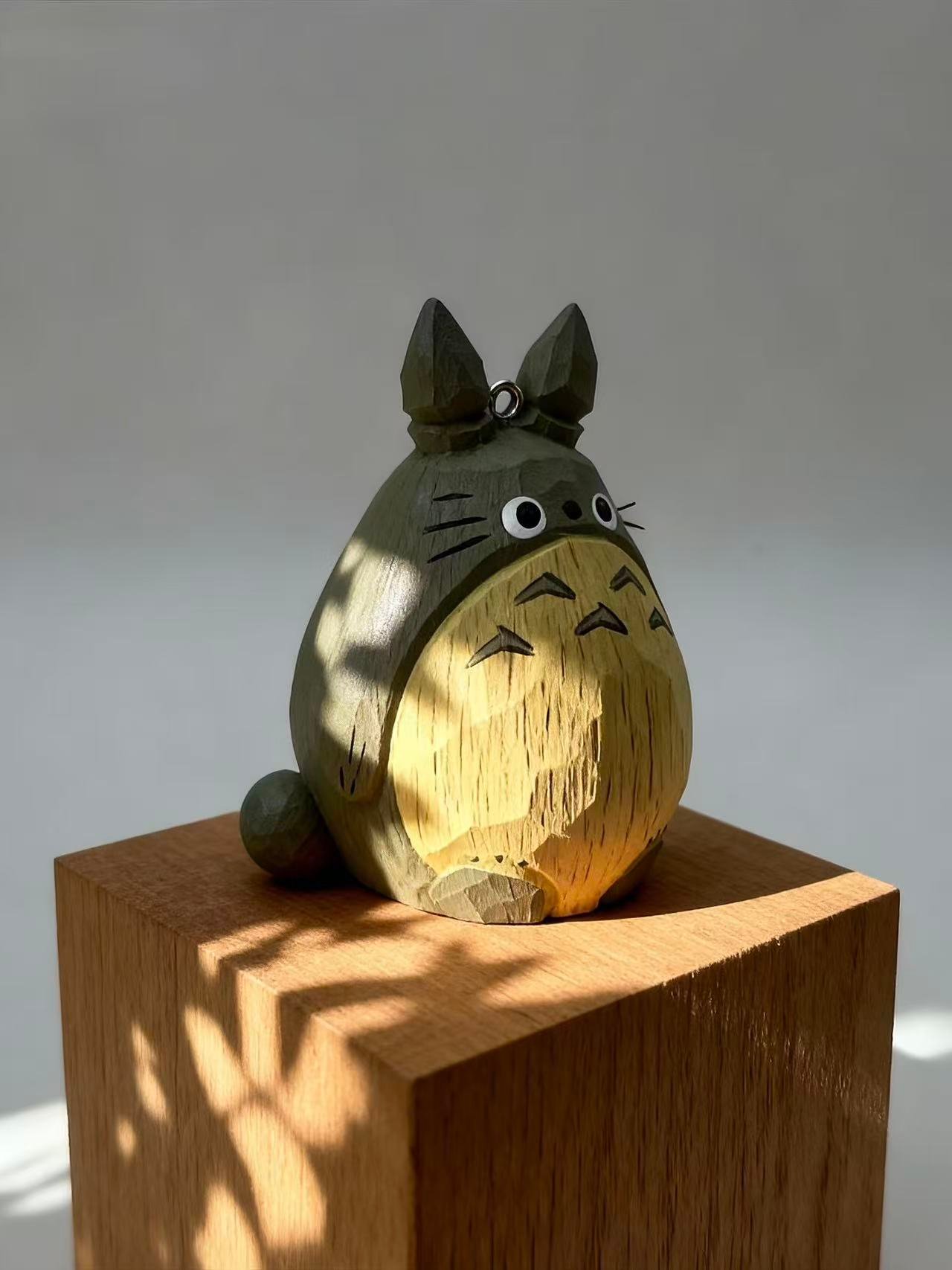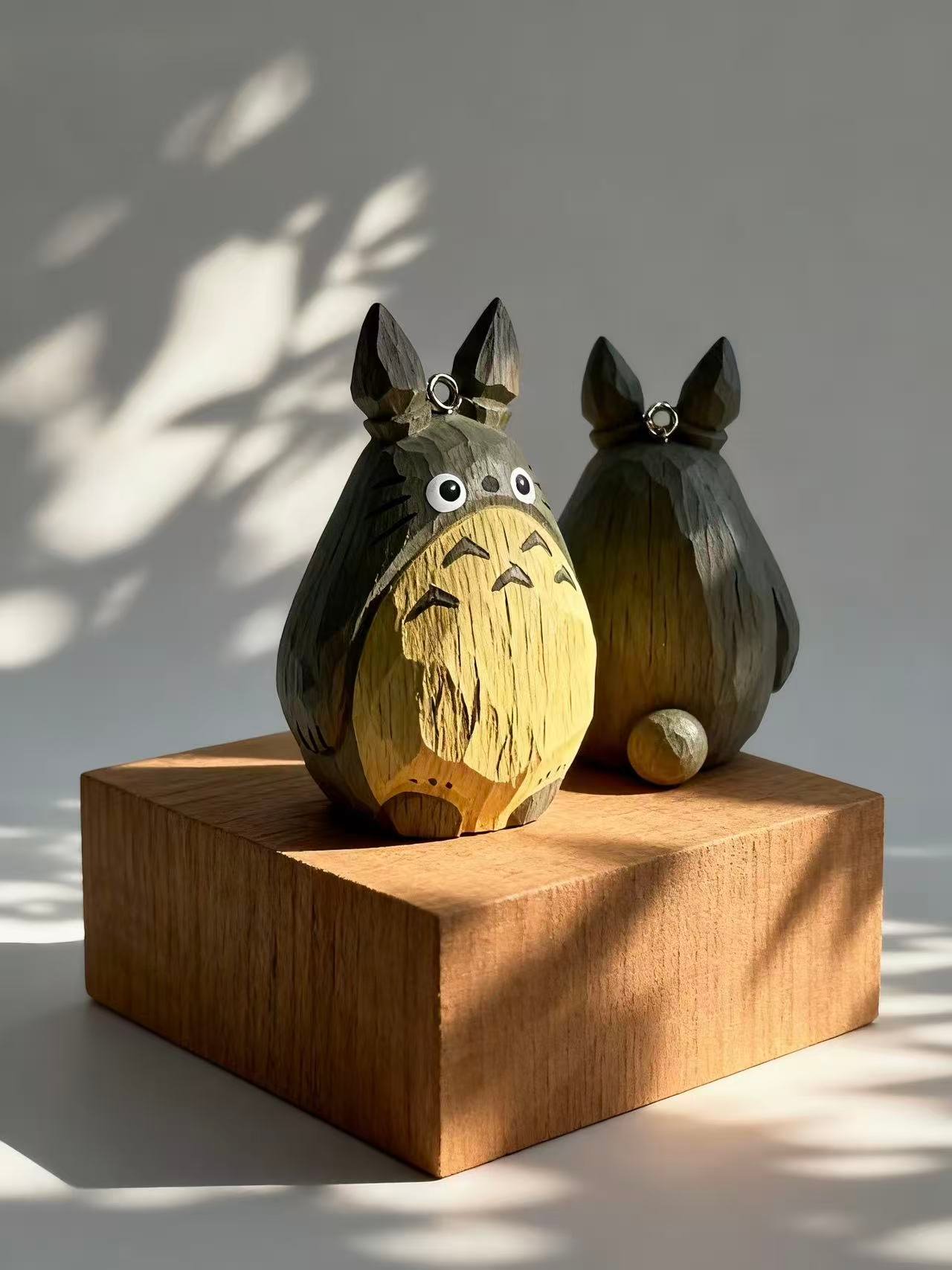 A hand-carved wooden Totoro ornament with a faceted design and painted forest tones. Charming, compact, and ready to hang—perfect for gifting or adding a touch of magic to your space.